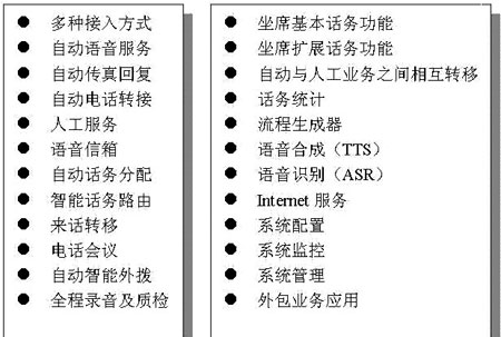 交互式語音應(yīng)答及傳真系統(tǒng)(IVR/IFR) IVR(Interactive Voice Response,交互式語音應(yīng)答)以及IFR(Interactive Fax Response,交互式傳真應(yīng)答)應(yīng)用軟件主要完成系統(tǒng)語音引導(dǎo)、語音交互式語音應(yīng)答、收發(fā)傳真等功能。IVR的使用節(jié)省了人工接續(xù)時(shí)間,使呼叫中心效率大幅度提高,大大降低了運(yùn)營成本。在IVR/IFR這方面的產(chǎn)品,HOLLYCRM有HollyIVR。HollyIVR是成熟的電信級(jí)IVR/IFR應(yīng)用軟件產(chǎn)品,可以實(shí)現(xiàn)自動(dòng)語音引導(dǎo)、語音交互式語音應(yīng)答、收發(fā)傳真、圖形化流程開發(fā)、系統(tǒng)監(jiān)控管理、自動(dòng)外撥、TTS/ASR等功能,在電信級(jí)和企業(yè)級(jí)等數(shù)幾十個(gè)不同規(guī)模的呼叫中心系統(tǒng)中被廣泛使用 。