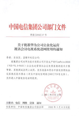 日前,在中國電信集團公司組織的“新視通”公眾化視訊運營許可證的測試中,華為公司具有完全自主知識產權的“視點通”ViewPoint 8000綜合視訊系統(tǒng)以其先進的設計理念和卓越的產品性能,順利通過測試,成為業(yè)界第一個獲得中國電信集團公司公眾視訊運營許可證的產品。同時華為公司也成為目前業(yè)界唯一獲此認證的設備供應商。