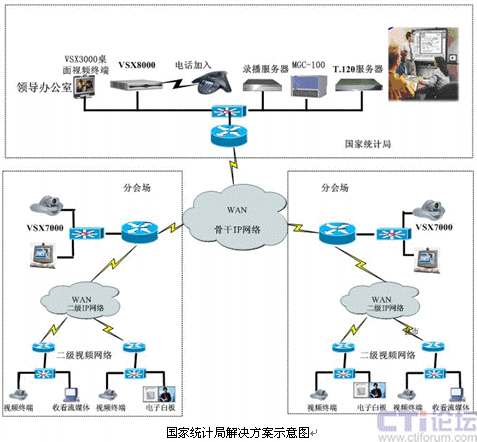 為確保如此巨大的視頻會(huì)議系統(tǒng)的應(yīng)用效果,視頻會(huì)議系統(tǒng)的各個(gè)設(shè)備全部采用POLYCOM公司的產(chǎn)品。寶利通(POLYCOM)公司依靠自身豐富的經(jīng)驗(yàn)、領(lǐng)先的產(chǎn)品和技術(shù)以及豐富的項(xiàng)目部署經(jīng)驗(yàn),結(jié)合國家統(tǒng)計(jì)局的實(shí)際需求,提出了全套的視頻會(huì)議系統(tǒng)解決方案,并最終憑借產(chǎn)品出色的視音頻質(zhì)量、良好的穩(wěn)定性和先進(jìn)的技術(shù)、以及出色的服務(wù)贏得了用戶的認(rèn)可,成功中標(biāo)國家統(tǒng)計(jì)局視頻會(huì)議系統(tǒng)項(xiàng)目.該系統(tǒng)可最大限度地發(fā)揮其現(xiàn)有IP寬帶網(wǎng)絡(luò)的優(yōu)勢(shì),加快對(duì)具體事件的處理速度,節(jié)約辦事人員的路途時(shí)間,最大限度地提高政府的辦公效率,降低辦公費(fèi)用。