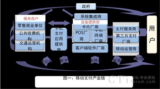 嗅覺敏銳的移動支付產(chǎn)業(yè)鏈各方正在合作中博弈,在競爭與合作中造就一個誘人的市場蛋糕。移動支付產(chǎn)業(yè)鏈包括移動運營商、支付服務(wù)商(比如銀行,銀聯(lián)、第三方支付等)、應(yīng)用提供商(零售商業(yè)、公共事業(yè)、交通運營、票務(wù)等)、設(shè)備提供商(終端廠商,卡供應(yīng)商,芯片提供商等)、系統(tǒng)集成商、商家和終端用戶及政府。在產(chǎn)業(yè)鏈之中,終端用戶和商家位于兩端,是移動支付業(yè)務(wù)重要的市場受眾,中國銀聯(lián)、電信運營商和第三方支付服務(wù)商是服務(wù)提供者,POS 機制造商、SIM 卡制造商、終端制造商、芯片制造商以及系統(tǒng)服務(wù)提供商是移動支付市場近距支付的重要支撐力量,政府在這其中是負(fù)有政策監(jiān)管和標(biāo)準(zhǔn)引導(dǎo)方面的主導(dǎo)者,營造安全的支付環(huán)境,加快移動支付相關(guān)標(biāo)準(zhǔn)的研究和制定是政府目前的首要任務(wù)。
