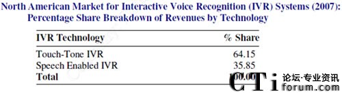 CTI論壇(ctiforum)11月3日消息(記者 楊佳林):根據(jù)Global Industry Analysts, Inc. 2010研究報告指出, 語音識別每兩年的復(fù)合成長率(CAGR)為97.7%, 其中美, 加占65%。以2007年的IVR銷售營業(yè)額而言, 具有語音識別功能的IVR系統(tǒng)已占有的1/3的比例, 顯示出語音識別系統(tǒng)已逐漸取代瀪復(fù)的IVR系統(tǒng),提供一步到位的服務(wù)。