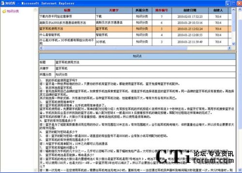 知識庫可以由企業(yè)相關(guān)人員自行設(shè)定、更新最新的產(chǎn)品知識、市場信息和競爭產(chǎn)品比較等信息。強(qiáng)大的搜索功能也使得查詢更加便利。如當(dāng)客戶提出某問題使得服務(wù)人員無法立即回答時,系統(tǒng)還提供相應(yīng)的填寫欄目以便及時發(fā)送至主管,請求幫助。而當(dāng)主管對此問題進(jìn)行回復(fù)后,可以選擇將此問題自動放入知識庫,以便同其他人員分享。系統(tǒng)可以根據(jù)問題的點(diǎn)擊率將最感興趣的問題排列在最前,并可以匯總出一定時間內(nèi)最感興趣的問題及產(chǎn)品,作為企業(yè)對服務(wù)人員今后培訓(xùn)的重點(diǎn)。同時,系統(tǒng)將自動記錄每一位客戶的咨詢記錄,及時更新并在客戶再次致電時,顯示在客戶資料當(dāng)中。