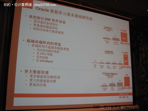 喻思成在介紹甲骨文在云計(jì)算產(chǎn)品的時(shí)候毫不掩飾對(duì)Oracle數(shù)據(jù)庫(kù)云服務(wù)器和Oracle中間件云服務(wù)器的贊譽(yù)。他說(shuō),甲骨文將這兩款產(chǎn)品稱之為“經(jīng)過(guò)預(yù)調(diào)測(cè)的系統(tǒng)”。它們均由硬件和軟件組成,硬件和軟件能以一種優(yōu)化的方式協(xié)調(diào)一致地運(yùn)行,并以一種預(yù)集成的工作狀態(tài)提供給客戶,因此具有極高的性能和效率,是數(shù)據(jù)庫(kù)的理想目標(biāo)平臺(tái),也是在中間層合并幾十或數(shù)百個(gè)應(yīng)用的理想目標(biāo)平臺(tái)。由于它們都是由甲骨文預(yù)集成和預(yù)配置的,因此也簡(jiǎn)化了部署,能減少總的硬件量并降低環(huán)境復(fù)雜性,因此對(duì)客戶而言,其總體擁有成本更低。