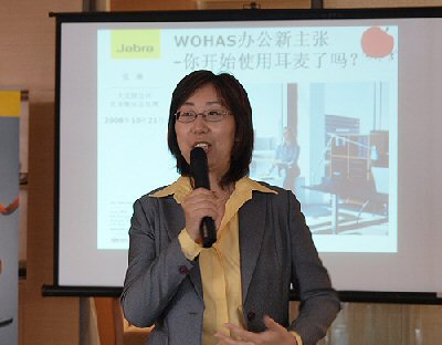 2008年10月21日,上海,來(lái)自丹麥的全球第一耳麥制造商GN大北歐在位于中山南路的老碼頭廣場(chǎng)內(nèi)為旗下新推出的兩款辦公耳麥產(chǎn)品—Jabra
