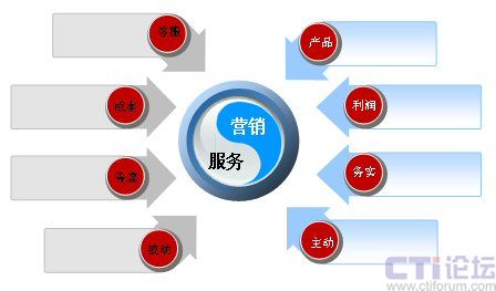 在講如何建立服務營銷體系,我借用了一個模型,這里我想強調的是閉環(huán),服務和營銷是互動的,應該形成一個很好的閉環(huán)。賽迪呼叫在做服務營銷的過程中,我們有很深切的體會。當時做保險電銷時,我們只做電銷這一塊,服務是由保險公司自己做。由于服務的不到位,最后沒有成單,反而接到客戶的投訴電話。由于服務與營銷的脫節(jié),我們的業(yè)務做的非常的艱難。另外,目前我們許多企業(yè)都在為降低成本,做類似于會員卡營銷的業(yè)務,但是卻忽視了許多環(huán)節(jié),比如配送、支付等,在服務方面不計算投資回報,那么收到的效果也不會太好。在服務營銷的環(huán)節(jié)中,如果呼叫中心只是作為執(zhí)行環(huán)節(jié),企業(yè)按結果與呼叫中心結賬,但是如果在一些其他環(huán)節(jié),企業(yè)沒有進行充分的考慮,服務不到位,呼叫中心就沒有辦法承擔整個的營銷結果。