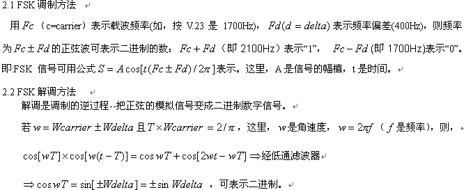FSK即"頻移鍵控",它的英譯為"Frequency Shift Keying"。它是在電話線上進(jìn)行二進(jìn)制數(shù)據(jù)(當(dāng)然,也包括"Caller