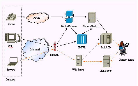 FineSupportIP Contact Center基于先進(jìn)的LodeSoft iAfx體系架構(gòu),完全統(tǒng)一來(lái)自電話和Internet的客戶服務(wù)請(qǐng)求。來(lái)自PSTN的電話語(yǔ)音首先經(jīng)由媒體網(wǎng)關(guān)轉(zhuǎn)換為IP電話數(shù)據(jù)流,具有完全分布式特性,能夠幫助江蘇網(wǎng)通實(shí)現(xiàn)多點(diǎn)的、虛擬統(tǒng)一的客戶服務(wù)中心的目標(biāo);其基于VoIP技術(shù)的軟件ACD(自動(dòng)呼叫分配器)根據(jù)呼叫類型、服務(wù)人員忙閑狀態(tài)、可定制的分配策略進(jìn)行呼叫分配;基于Voice XML技術(shù)的IP-IVR單元,可以靈活地定義自動(dòng)語(yǔ)音服務(wù);系統(tǒng)另一顯著特點(diǎn)是系統(tǒng)遵循開(kāi)放性原則,可集成第三方硬件和第三方業(yè)務(wù)軟件,使網(wǎng)通逐步實(shí)現(xiàn)統(tǒng)一、全面的客戶服務(wù)體系。