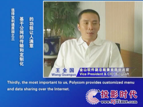 寶利通公司中國區(qū)總經(jīng)理李鋼先生說:“此次寶利通全球領(lǐng)先的高清視頻會(huì)議系統(tǒng)得到金山軟件的認(rèn)可,為我們的極致高清方案帶來又一個(gè)經(jīng)典案例。作為金山軟件企業(yè)信息化進(jìn)程的重要一環(huán),高清方案成為先期實(shí)施的項(xiàng)目之一。這充分反映了本土高科技企業(yè)對(duì)構(gòu)建方便、快捷、高質(zhì)量統(tǒng)一協(xié)作平臺(tái)所給予的足夠重視,我們深表欽佩。真誠期待通過我們的優(yōu)質(zhì)服務(wù)和成熟的解決方案,讓更多客戶體會(huì)到協(xié)作通信所帶來的成本效益優(yōu)勢(shì)和工作便利!