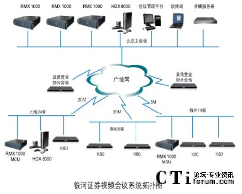 銀河證券視頻會(huì)議系統(tǒng)采用寶利通視頻會(huì)議產(chǎn)品,在銀河證券北京總部中心機(jī)房配備寶利通新一代實(shí)時(shí)媒體會(huì)議平臺(tái) RMX 1000 MCU和高清錄播服務(wù)器;在上海和杭州也分別配置了RMX 1000 MCU;