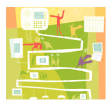 俗話說,多多益善。但是當談到多個網(wǎng)絡的管理或費用承擔等問題時,恐怕大多數(shù)人都會同意一個網(wǎng)絡要比兩個或者三個更為經(jīng)濟有效。這其實是很容易理解的----當數(shù)據(jù),語音和視頻能夠利用同一個網(wǎng)絡進行傳輸?shù)脑,還有什么必要在每個桌子拖上一大堆電線,讓公司維護三五套網(wǎng)絡硬件,還要養(yǎng)活好幾組技術支持隊伍呢?更何況一個綜合性的網(wǎng)絡還能集中精力為每個用戶提供更好的服務?于是,IP電話應運而生,這種技術讓很多公司有機會利用現(xiàn)有的網(wǎng)絡框架贏得更大的利益。