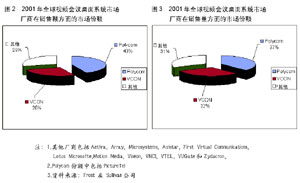 2002年年初,在IDC預測的本年度IT業(yè)界熱點技術中,視頻會議技術位居前列。而根據(jù)通信專業(yè)領域著名獨立研究機構Wainhouse 的一份調(diào)查報告,2001年全球視頻通信領域僅設備市場,容量就達到近6億美元,占整個視頻會議市場52%的份額。Wainhouse還指出,2002年是視頻會議領域發(fā)展極為迅猛的一年,估計到2006年,整個視頻會議市場的市場容量將達到29億美元,比2001年增長20.4%。