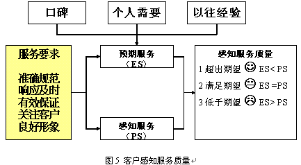 。。了解到制度規(guī)范的范圍,籌備人員有可能還是感覺到迷茫,這些規(guī)定要怎么制定呢?可以修改公司原來的資料,也可能是想到哪里寫到哪里。在這里,筆者的建議是從兩個(gè)方面去思考。第一是客戶方面,先要了解到客戶的需要和感知。下圖可以說明客戶是如何感受到優(yōu)質(zhì)服務(wù)的。