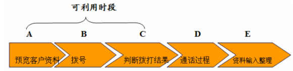 以上是以固定電話作為例子,如果呼叫清單全部是手機(jī)用戶,各種外呼結(jié)果的比例將有所不同,但總體趨勢不會有太大變化,至少還是有30%-40%的客戶是無法聯(lián)絡(luò)到的客戶。我們從以上的圖中可以看出,近一半的客戶是由于各種原因而無法聯(lián)絡(luò)到的,換句話來說,坐席代表花了大量的時間在處理一些無效的電話,而真正有效的話務(wù)時間(ACD%)50%左右。如果將這部分時間用來處理一些有效電話,那整個呼叫中心的效率將得到極大的提升。以下是一個電話呼出的過程: