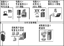 而會議室型一般通過專用設(shè)備或高級的視頻采集卡、遙控攝像槍來獲取高質(zhì)量的圖像、聲音,再通過寬帶(200kbps/路,甚至更高)進(jìn)行傳輸。通過投影機的大畫面提供給整個會議室人員觀看。