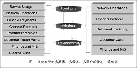 “很淺顯地說,就目前國內(nèi)運營商的分析水平而言,問題并不是出在工具上,對于一些省級運營商而言,無論是集成商、還是系統(tǒng),都可以說已經(jīng)采用了全球領(lǐng)先供應(yīng)商的產(chǎn)品,但具體到業(yè)務(wù)上,由于長期以來的模式尚未改變,有可能到客戶調(diào)查時才發(fā)現(xiàn),電話占用號碼的客戶已經(jīng)停機了,而調(diào)查人員卻不能實時看到業(yè)務(wù)收入表,更準確地說,針對同一客戶,他用了哪些業(yè)務(wù)?是單一業(yè)務(wù)還是多種業(yè)務(wù)?是優(yōu)惠業(yè)務(wù)還是正常業(yè)務(wù)?服務(wù)坐席都有可能無法立即獲得實時數(shù)據(jù),這樣的前提下,再怎么說計費系統(tǒng)、融合業(yè)務(wù)、服務(wù)質(zhì)量,都不具現(xiàn)實意義。”山東網(wǎng)通計費部門一位不愿意透露姓名的副主任級主管告訴記者。