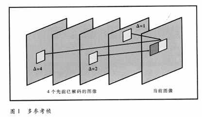 過去,在H.261等標(biāo)準(zhǔn)中,運(yùn)動(dòng)補(bǔ)償時(shí)只選用前一幀作參考幀。為了進(jìn)一步提高預(yù)測精度,H.264中可選用多至前后5幀的多參考幀(見圖1)。
