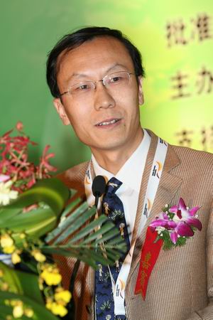 圖為:信息產(chǎn)業(yè)部電信研究院IP和多媒體研究部主任何寶宏演講。(駱磊 攝)