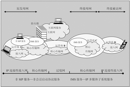 IP多媒體子系統(tǒng)(IMS)是一組核心網(wǎng)絡(luò)功能實(shí)體和接口,主要由網(wǎng)絡(luò)服務(wù)供應(yīng)商向用戶提供基于會(huì)話啟動(dòng)協(xié)議(SIP)的服務(wù)組成。會(huì)話啟動(dòng)協(xié)議是由互聯(lián)網(wǎng)工程特遣隊(duì)(IETF)制定的[4]。盡管在IP多媒體子系統(tǒng)與基礎(chǔ)傳輸功能之間有某些鏈路,而且這些鏈路是可以由接入體現(xiàn)的,但I(xiàn)P多媒體子系統(tǒng)大部分是獨(dú)立于接入網(wǎng)技術(shù)的。IP多媒體子系統(tǒng)是在互聯(lián)網(wǎng)工程特遣隊(duì)協(xié)議上建立的,它以特殊的形態(tài)和增強(qiáng)的性能,提供完備、強(qiáng)健的多媒體系統(tǒng)。