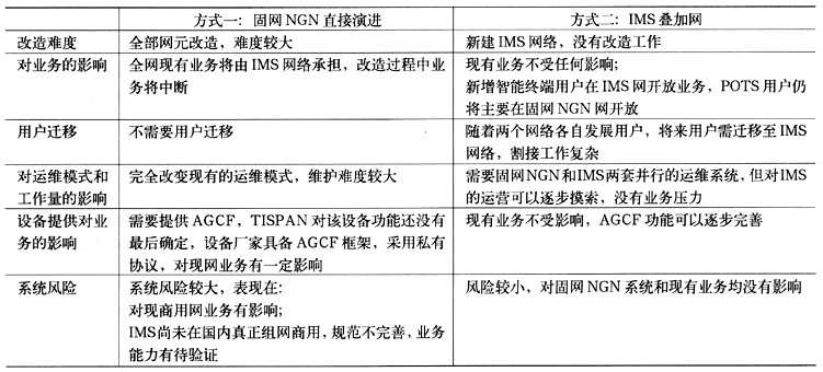在以上兩個前提下,固網(wǎng)NGN向IMS的演進有以下3種方式。