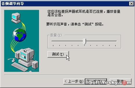 單擊“下一步”跳過(guò)Netmeeting服務(wù)器設(shè)置,此時(shí)向?qū)?huì)要求對(duì)計(jì)算機(jī)聲卡和麥克風(fēng)進(jìn)行測(cè)試,如圖5。