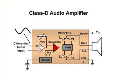 在音頻解決方案中進(jìn)行折衷與音頻處理性能、音頻輸出功率、熱耗散和整體的功耗有關(guān)。傳統(tǒng)的音頻方案由兩到三個(gè)受AB類音頻功率放大器驅(qū)動(dòng)的揚(yáng)聲器構(gòu)成。然而,相對(duì)于它的整個(gè)音頻輸出而言,AB類放大器的工作固有地生成大量的熱。這些積聚起來(lái)的高溫因?yàn)樾枰蟮纳崞瑏?lái)散發(fā)熱量,所以,在大多數(shù)薄形狀因子的平面電視中禁止采用AB類放大器。為了解決這個(gè)問(wèn)題,業(yè)界采用了D類放大器技術(shù)(圖3)。目前,輸出場(chǎng)效應(yīng)三極管(FET)可以在截止區(qū)與飽和區(qū)之間切換,從而提供比AB類放大器更高的效率,F(xiàn)有的音頻解決方案容許你完全利用數(shù)字信號(hào)路徑。這不僅僅最大化音頻效率,而且,它們也提供有效的處理和大于110dB的信噪比(SNR)。