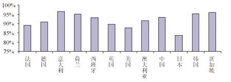 由于所調(diào)查的大多數(shù)是成熟市場,因此大多數(shù)國家的移動電話普及率超過75%。其中,普及率超過90%意味著有的用戶可能有幾張SIM卡。