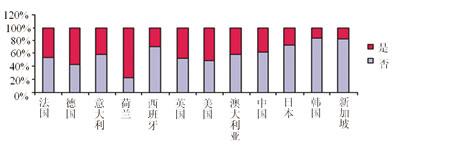 此外,還有一些被調(diào)查者表示愿意接受廣告以換取手機電視和電影大片。對于兩種不同的業(yè)務(wù),用戶對這一問題的反應(yīng)相似。在各個國家中,荷蘭用戶的接受比率較低;在歐洲,西班牙與意大利的接受程度很高;在亞洲,日本、韓國和新加坡的接受比率也很高。(見圖7)