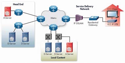 獲取服務(wù)器(A-Server,Acquisition Servers)是從本地或者遠(yuǎn)端的視頻源實(shí)時獲取內(nèi)容并提供視頻組播服務(wù)。分發(fā)服務(wù)器(Distribution Servers)是用于從運(yùn)營商網(wǎng)絡(luò)中的多個采集點(diǎn)分發(fā)視頻內(nèi)容以保證視頻的快速傳送以及最快的頻道切換時間。在用戶側(cè)的IP機(jī)頂盒則運(yùn)行微軟公司獨(dú)有的軟件和協(xié)議以保證最優(yōu)的性能。