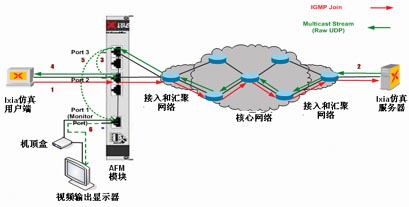 IXIA統(tǒng)一的IP測試平臺為IPTV的全方位評估提供了保證,IXIA IPTV測試方案的主要特點(diǎn)包括:   使用IXIA全面領(lǐng)先的測試解決方案,可以十分方便地實(shí)現(xiàn)Triple Play網(wǎng)絡(luò)端到端的性能測試、VOD視頻服務(wù)器的性能測試、IP DSLAM和IGMP Switch的性能測試以及IP機(jī)頂盒(STB)的測試。為網(wǎng)絡(luò)設(shè)備制造商IPTV網(wǎng)絡(luò)設(shè)備研發(fā)以及運(yùn)營商IPTV網(wǎng)絡(luò)業(yè)務(wù)承載能力評估提供有力地幫助。