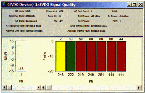 測(cè)試中,不僅可以得到各導(dǎo)頻級(jí)的信息、SINR、反向鏈路性能、功率控制、信令消息及RLP層吞吐量信息,還可以通過(guò)安捷倫接收機(jī)進(jìn)行獨(dú)立的射頻環(huán)境測(cè)試,如導(dǎo)頻掃描、頻譜測(cè)試和連續(xù)波測(cè)試,通過(guò)接收機(jī)的這些測(cè)試數(shù)據(jù),查找網(wǎng)絡(luò)中存在的導(dǎo)頻污染、鄰區(qū)丟失、基站始終、孤島效應(yīng)、外部干擾等問(wèn)題,從多方面對(duì)出現(xiàn)的問(wèn)題進(jìn)行定位分析,極大的提高了測(cè)試的效率。
