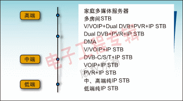 標(biāo)清(SD)對(duì)于大眾市場(chǎng)來說是一個(gè)合乎邏輯的選擇。ODM廠商不管選用哪種操作系統(tǒng)(Windows CE或Linux)都能與NXP公司的IP-STB平臺(tái)相結(jié)合,為本地市場(chǎng)生產(chǎn)所期望的產(chǎn)品。