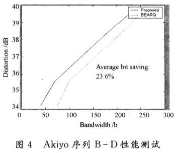 針對(duì)上節(jié)提出的重發(fā)機(jī)制和算法原理,為了評(píng)估方便,不失一般性,在實(shí)驗(yàn)中假設(shè)最大重傳次數(shù)為1。從上文可知,允許重傳次數(shù)越多,則對(duì)同樣的終端接收失真而言,BEARQ機(jī)制從B-D性能來看也就會(huì)越差,而這里設(shè)計(jì)的重發(fā)機(jī)制相對(duì)于BEARQ的B-D性能提高也就越明顯。