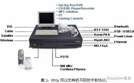 多年來(lái),低成本FPGA器件已經(jīng)成為機(jī)頂盒和視頻網(wǎng)關(guān)的關(guān)鍵器件,可提供視頻增強(qiáng)、丟失像素替換、視頻轉(zhuǎn)換、產(chǎn)品靈活性以及產(chǎn)品差異等功能。此外,這些器件還允許生產(chǎn)商方便地支持不同的技術(shù)和協(xié)議,如圖2所示。
