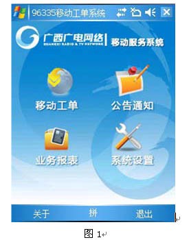 移動工單系統(tǒng)是數(shù)字電視客戶呼叫中心平臺系統(tǒng)的延伸,它結(jié)合最新的網(wǎng)絡(luò)移動技術(shù),實現(xiàn)數(shù)字電視服務(wù)工單分派業(yè)務(wù)的自動流轉(zhuǎn)和實時流轉(zhuǎn),各地市維護(hù)站的服務(wù)工作人員通過智能手機終端,實時獲取工作任務(wù)、計劃安排,進(jìn)行業(yè)務(wù)處理,通過移動網(wǎng)絡(luò)查詢客戶信息、查詢用戶產(chǎn)品訂購資料,上報處理結(jié)果和用戶反饋信息,通過移動網(wǎng)絡(luò)提交到管理部門,管理層能及時的掌握服務(wù)進(jìn)展情況,并能隨時做出決策和指揮,真正實現(xiàn)對用戶最快速、有效的服務(wù)需求響應(yīng),保證了服務(wù)質(zhì)量和用戶滿意度,提升了數(shù)字電視的服務(wù)水平與服務(wù)檔次。其界面如圖1所示。