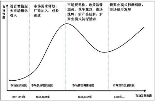 圖1:中國語音增值業(yè)務(wù)市場發(fā)展階段(資料來源:易觀)