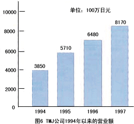 ——該公司成立于1992年,現(xiàn)在是日來第4大電話營銷專業(yè)公司。該公司是從原福武書店的電話中心獨立出來的。福武書店的”進研學習會”(類似于中國的函授大學)在日本全國擁有401萬會員。對這些會員的客戶服務目前占TMJ業(yè)務的50%,盡管TMJ成立時間不長。但由于積極引進先進技術(shù)(CTI,IVR,ACD,預撥號)和先進的管理方式,發(fā)展非常迅猛。1997年營業(yè)額達到81億7千萬日元,總席位有1,500個,外線數(shù)3,00O條,登錄業(yè)務代表達4,350人,該公司擁有6個呼叫中心(東京3個,大販、名古屋、岡山各1個),每月平均呼入電話63萬個,呼出電話60萬個。該公司的主要業(yè)務有:訂購、預約受理、促銷活動、銷售支持、客戶服務中心,其中面向消費者/面向企業(yè)的比例為4∶1。圖6為TMJ公司1994年以來的營業(yè)額。