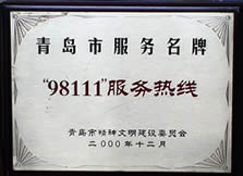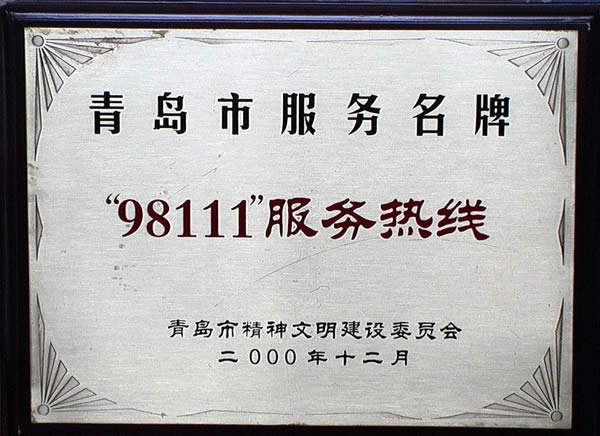 市級榮譽稱號有“先進基層黨支部”、“女職工明星崗”、“三八”紅旗集體、“十佳職業(yè)道德單位”、“青島市服務名牌”、“先進基層黨組織”、“優(yōu)秀科技成果”、 “科學技術進步二等獎” 、“巾幗文明示范崗”、“經(jīng)濟技術創(chuàng)新工程創(chuàng)新示范崗”、“2002年度青島市文明單位”、 “公民道德建設示范點”、“青島市創(chuàng)建國家節(jié)水型城市突出貢獻單位。