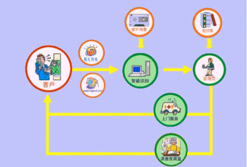 售后技術(shù)咨詢及報修:用戶購機(jī)之后,同樣可以通過電話或者網(wǎng)絡(luò)進(jìn)入呼叫中心系統(tǒng),系統(tǒng)會通過用戶檔案庫得到用戶的詳細(xì)信息并為他尋找合適的咨詢員,咨詢員會依據(jù)共享的知識庫為用戶解決問題,如果用戶的機(jī)器需要上門服務(wù)。咨詢員會通過網(wǎng)絡(luò)查詢?nèi)珖⻊?wù)渠道的工程師和備件情況,并安排工程師迅速上門為用戶服務(wù)。維修完成一天后,系統(tǒng)會自動產(chǎn)生電話呼出,由咨詢員直接詢問用戶對服務(wù)過程的滿意程度,以便改進(jìn)我們的工作。