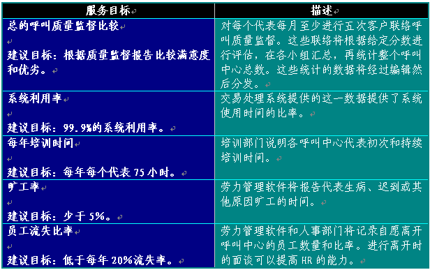 附錄3舉出了完整的衡量標(biāo)準(zhǔn)。這些工作評估標(biāo)準(zhǔn)可以通過各種辦法獲得,包括ACD、IVR、客戶關(guān)系管理(CSM)軟件和質(zhì)量監(jiān)督及勞力管理報(bào)告。