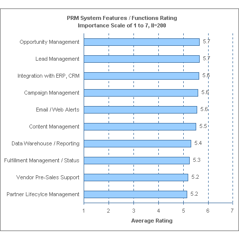 根據(jù)我公司在8月所做的一份為期兩周的網(wǎng)上調(diào)查顯示,人們最希望PRM具有的特點(diǎn)是機(jī)會(huì)/領(lǐng)導(dǎo)管理以及能與其它企業(yè)管理軟件(CRM/ERP)相結(jié)合。這份調(diào)查收集了約200份來自渠道經(jīng)理、渠道伙伴、軟件供貨商和IT、電信、金融服務(wù)以及生產(chǎn)行業(yè)的顧問的回答。