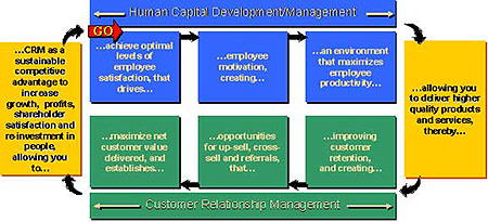下面的圖表表示的是相對于特定CRM考慮的HR價值鏈。通往成功的CRM的道路無疑將從“人”中穿越而過。