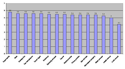 目前全球絕大多數(shù)的客戶體驗都極為冷漠。我對歐洲所作的調(diào)研顯示人們對所有行業(yè)企業(yè)的情感依賴性相當接近(2)。500位消費者評出了自己的最佳客戶體驗,該調(diào)研橫跨多個行業(yè)。他們對供應(yīng)商作了如下評價(等級從0-7):