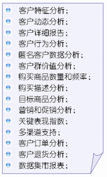 這些分析主題僅僅是冰山的一角,商場(chǎng)掌握了數(shù)據(jù)挖掘分析工具之后,根據(jù)營(yíng)銷需求設(shè)定的分析主題、數(shù)據(jù)模型與算法可以是層出不窮!——這也是企業(yè)IT團(tuán)隊(duì)獲得角色轉(zhuǎn)型與價(jià)值升華的機(jī)遇!