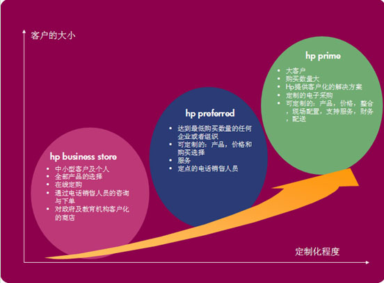 從圖中我們可以看出,對于不同類型的客戶,Business Store, HP Preferred, Hp Prime供其選擇。其中HP Prime,和Dell Premier Page的原理,應(yīng)用如出一轍,在這里就不贅述,它改進(jìn)的地方有如下: