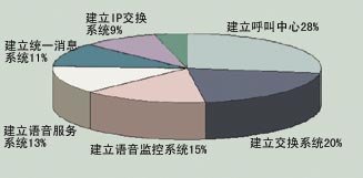 目前,語音卡已經(jīng)廣泛應(yīng)用于各行各業(yè),應(yīng)用尤其以呼叫中心應(yīng)用最為典型。 呼叫中心普遍應(yīng)用于各種行業(yè)部門中,例如:電信、金融、政府機(jī)關(guān)、醫(yī)療、保險(xiǎn)部門、電力等及其他一些應(yīng)用,像121天氣預(yù)報(bào)等。對用戶的抽樣調(diào)查中,已經(jīng)使用語音卡的用戶占58%,計(jì)劃使用的占26%,而語音卡的應(yīng)用以前臺、客戶服務(wù)部和售后服務(wù)部應(yīng)用居多,可見語音卡的應(yīng)用市場潛力非常巨大。語音卡的應(yīng)用中主要以建立呼叫中心和交換系統(tǒng)為主,常用于查詢、咨詢和電話委托交易等。