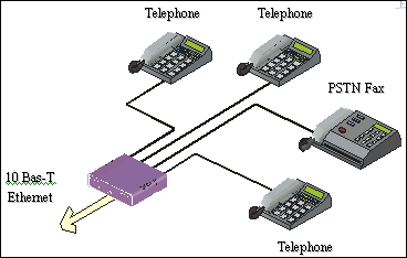 系統(tǒng)是基于 Windows NT操作系統(tǒng),在IP網(wǎng)上運行語音業(yè)務。它與電話網(wǎng)或PBX通過E1中繼或模擬線相連,在IP網(wǎng)側(cè)通過10/100BaseT 以太網(wǎng)相連,可支持兩個標準的電話終端進行呼叫。