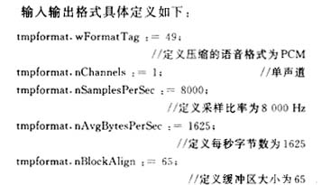 語(yǔ)音采集與壓縮使用Windows提供的ACM(Audio Compression Manager,音頻壓縮管理器)函數(shù),ACM的聲明文件提供并只提供直接調(diào)用ACMAPI的功能。如果有必要直接使用低層功能,可以按照下面的步驟使用ACM API。