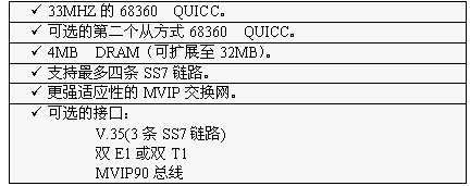 TX3220卡為SS7應(yīng)用提供了一個(gè)功能強(qiáng)大,配置靈活的平臺(tái)。它有一個(gè)66MHZ的68060協(xié)處理器,4個(gè)68360QUICC通信控制器和四口V.35或雙T1或雙E1網(wǎng)絡(luò)接口。
