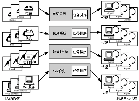 對通信媒體多樣性的支持是非常重要的,其中通信媒體包括電話、交互語音應(yīng)答、email、Web業(yè)務(wù)、傳真以及文件處理。為了處理通信媒體的多樣性,系統(tǒng)可能被分成多個子系統(tǒng),每個子系統(tǒng)對應(yīng)一種媒體類型。子系統(tǒng)將輸入的通信信息通知給負(fù)載序列,并且一直保留該通信信息,直到收到負(fù)載序列準(zhǔn)備路由該通信信息的消息。然后子系統(tǒng)按照負(fù)載序列的指令將通信信息發(fā)送到正確的代理坐席或設(shè)備。