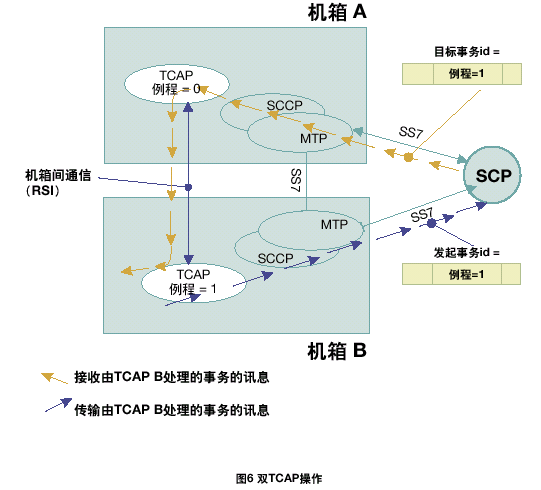 每個TCAP將所有接收的信息傳遞到同機箱中的TCAP用戶任務中。根據(jù)每一個TCAP中不同的應用層或用戶,將TCAP層的本地應用程序發(fā)送的傳送會話和組件原語傳遞給正確的TCAP。在雙系統(tǒng)環(huán)境中,接收訊息可以在任何MTP和SCCP層上共享;因此,一個TCAP層接收由其它TCAP處理的應用在激活事務上的TCAP訊息是可能的。
